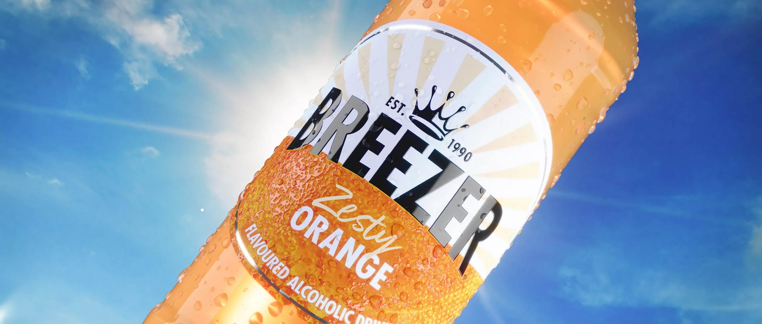 Very much a team effort at Knockout for the Global redesign of Breezer! The new look included a new crown icon representing the brand's heritage and a crafted new wordmark gave the brand a new, modern feel. Rays of sunshine to evoke a horizon to add to the feel of sunny social occasions. Individual abstract patterns main label and neck label for each flavour - and there were a lot!